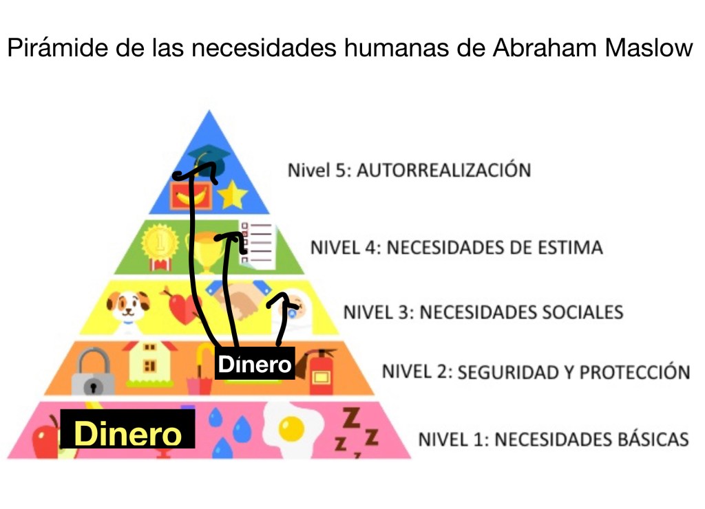 En la actualidad se puede ubicar el dinero en todo los niveles mentales de la pirámide de Maslow o pirámide de las necesidades, modelo que plantea una jerarquía de las necesidades humanas, en la que la satisfacción de las necesidades más básicas o subordinadas da lugar a la generación sucesiva de necesidades más altas o superordinadas, y en todos los niveles esta presente el dinero.