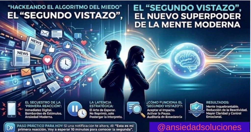«El problema actual», un campo ampliamente estudiado en Ansiedad Soluciones, es que las redes sociales y la inmediatez digital nos obligan a vivir atrapados en esa primera reacción. Creemos que lo que sentimos en el segundo 1 (uno) es la verdad absoluta. Y ahí es donde nace la ansiedad.