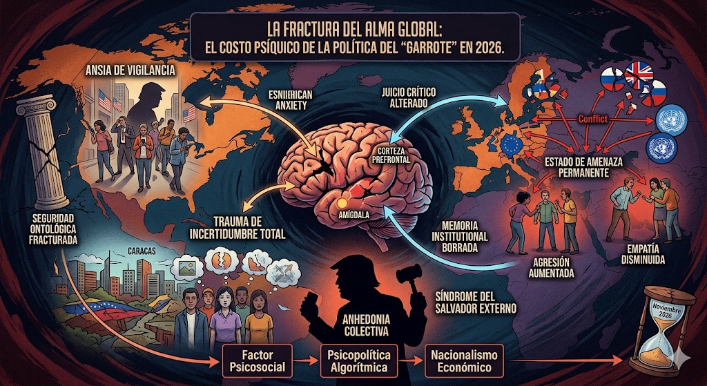 En este abril de 2026, la política ha dejado de ser una disputa de argumentos para convertirse en un ejercicio de fuerza bruta. La reciente captura de Nicolás Maduro —hace ya más de 90 días— y la política exterior de «presión máxima» de la administración Trump han instaurado una nueva normalidad. Sin embargo, bajo el espectáculo de los titulares y las victorias estratégicas, subyace un costo psíquico enorme: la erosión de las funciones mentales básicas que permiten la convivencia humana.